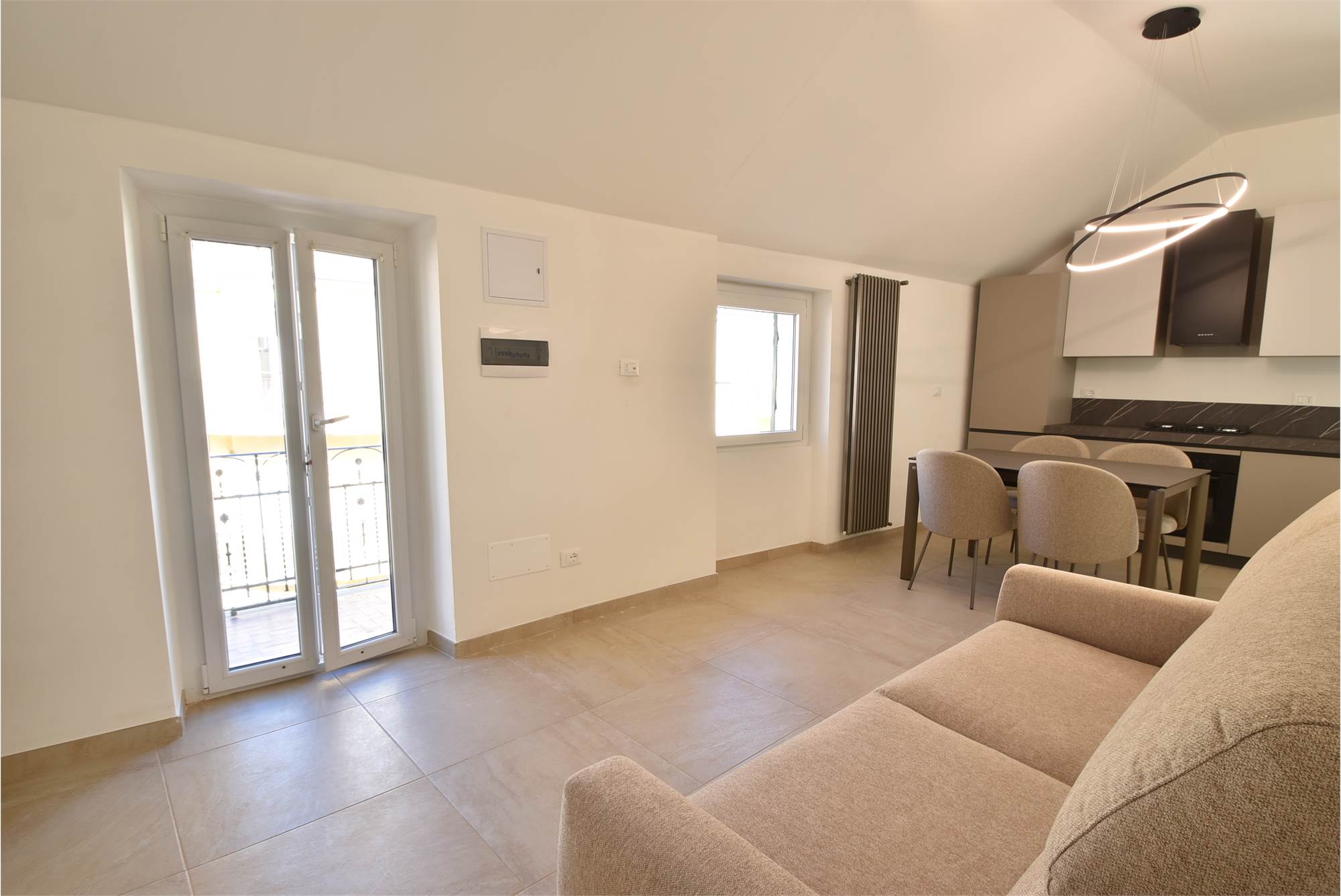Alassio, in via Dante, all’ultimo piano di un palazzo storico, proponiamo in vendita un ampio trilocale recentemente ristrutturato con finiture di pregio e arredamento finemente scelto. L’appartamento è composto da soggiorno con cucina a vista e balcone, due camere da letto e bagno finestrato con doccia. Riscaldamento autonomo con caldaia e climatizzatore in ogni stanza. Nessuna spesa condominiale.Comodo per vicinanza al budello e alla spiaggia.