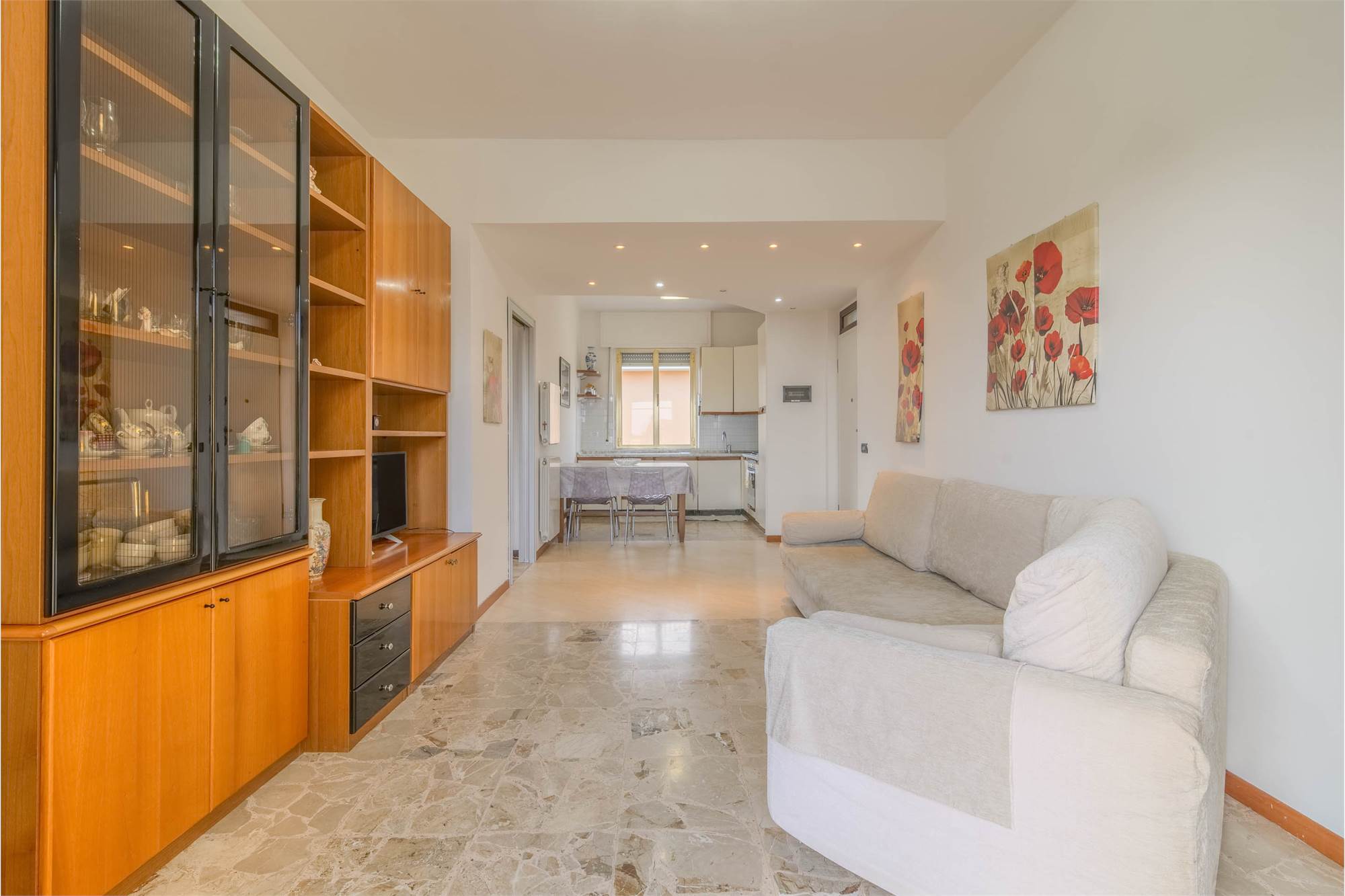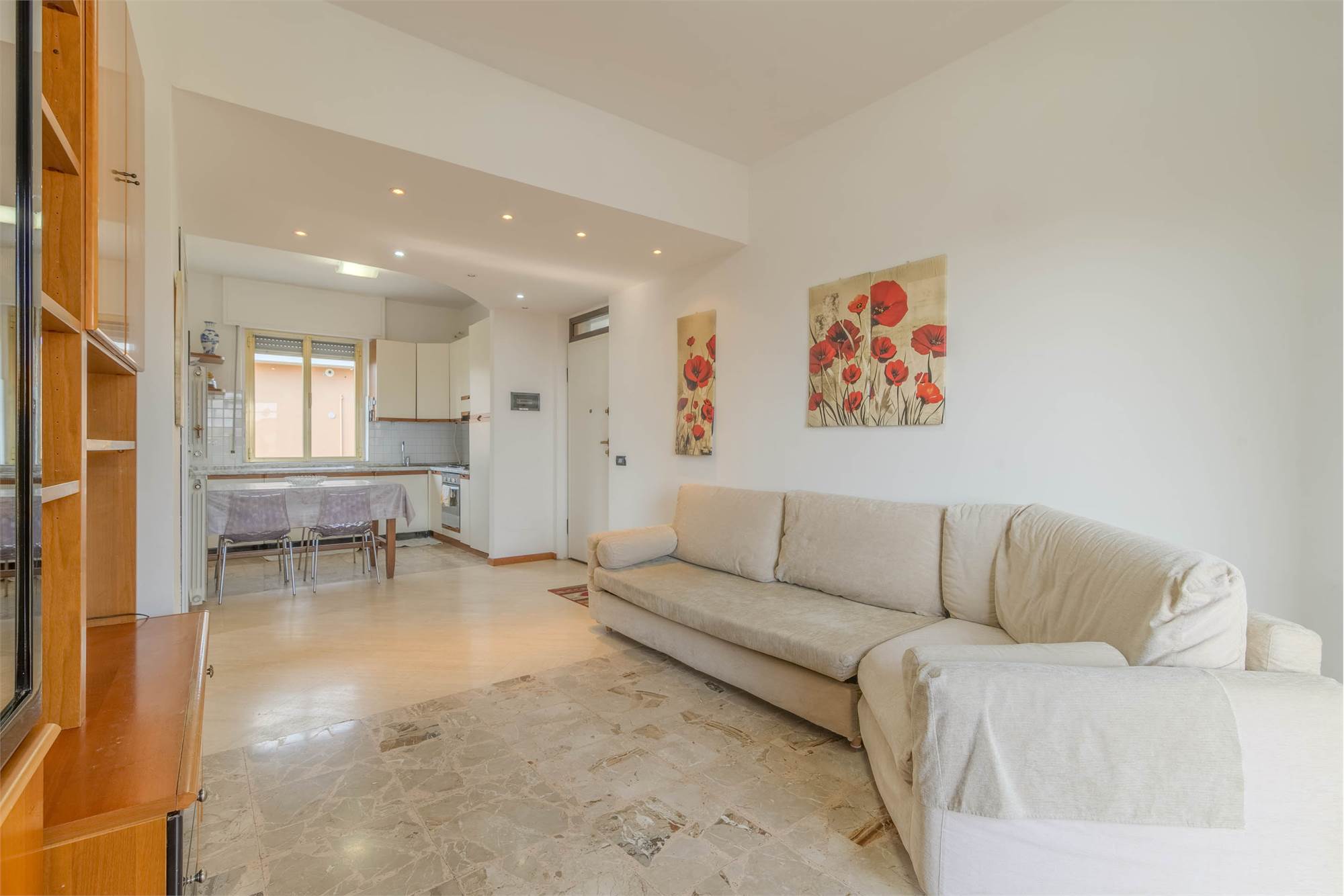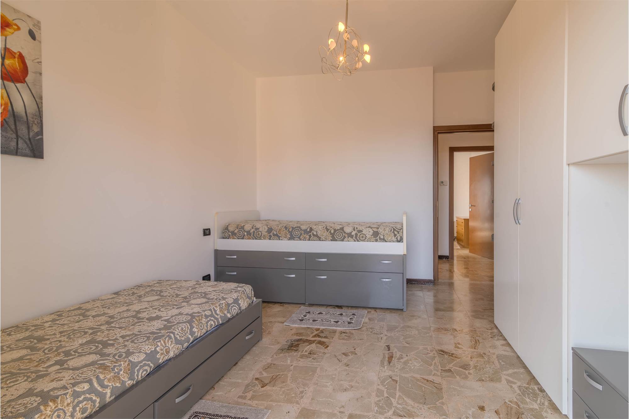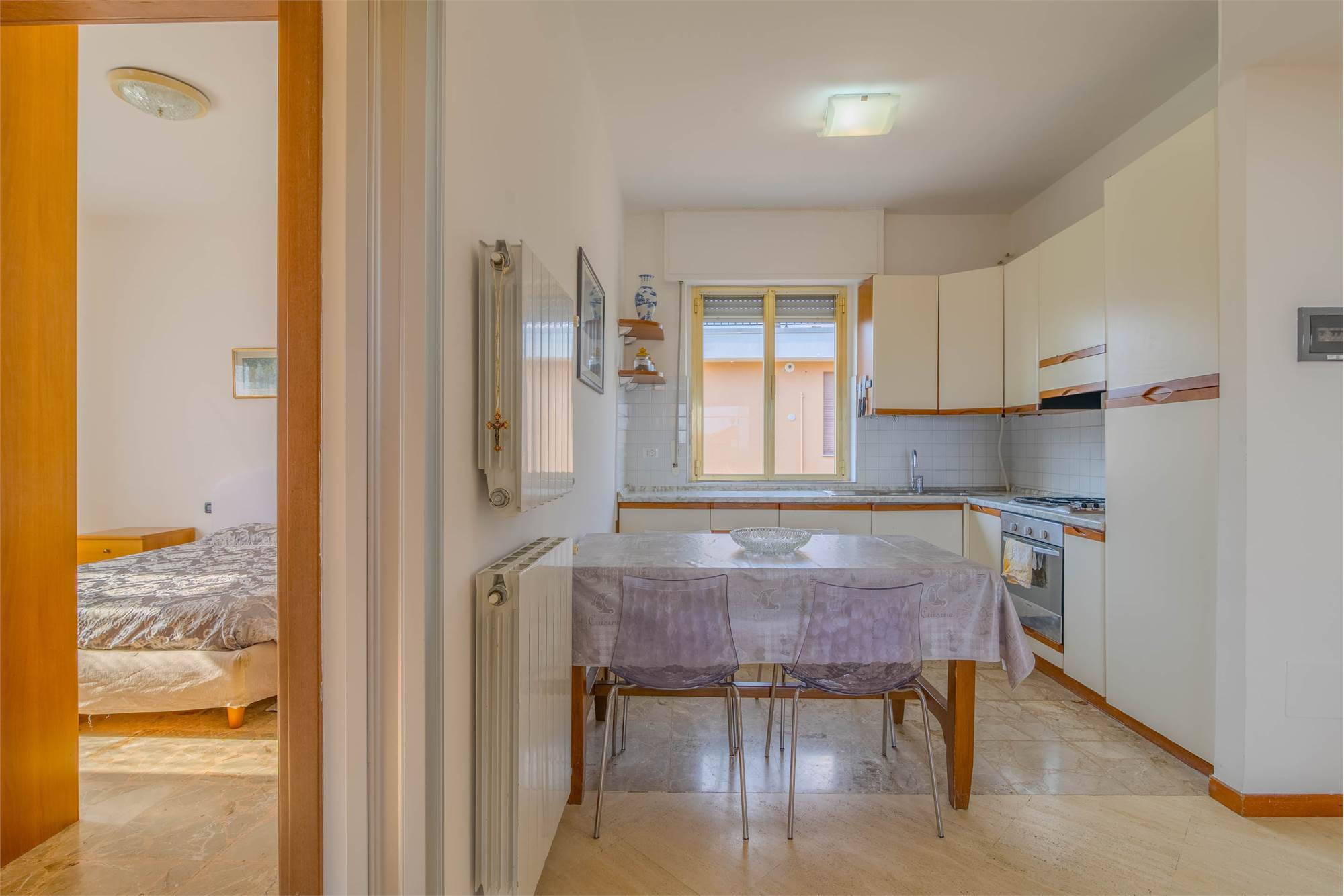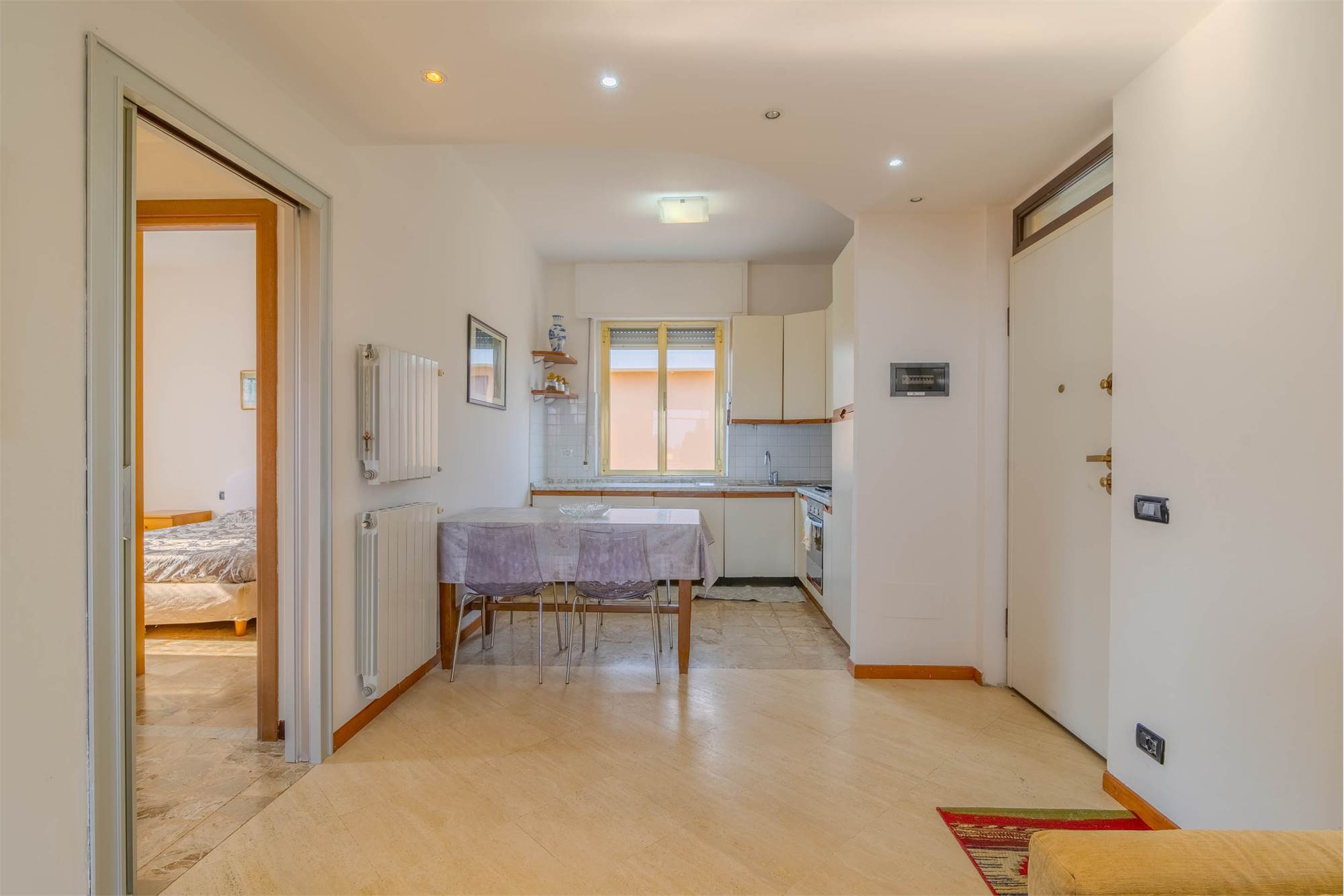 L’appartamento, inserito in un contesto tranquillo e riservato, accoglie con una piacevole zona giorno con cucina a vista, ideale per vivere momenti di convivialità. La zona notte è composta da due spaziose camere matrimoniali e da un bagno finestrato con doccia.